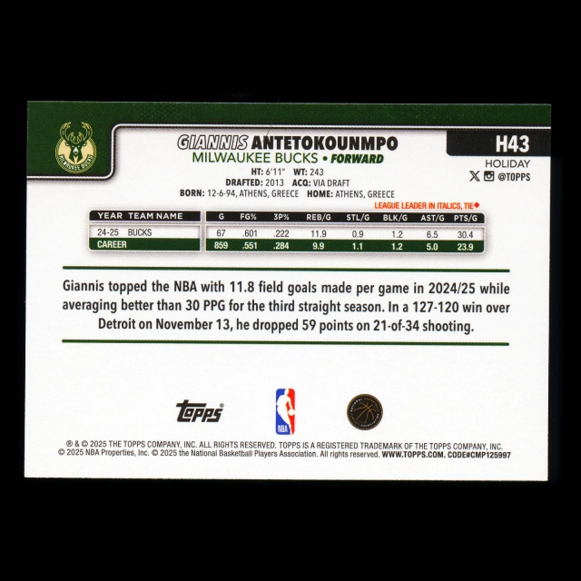 Giannis Antetokounmpo 2025-26 Topps Holiday Bucks