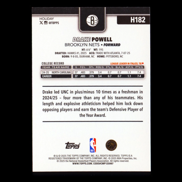 Drake Powell RC 2025-26 Topps Holiday Rookie Nets