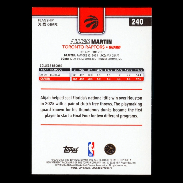 Alijah Martin RC 2025-26 Topps Rookie Raptors