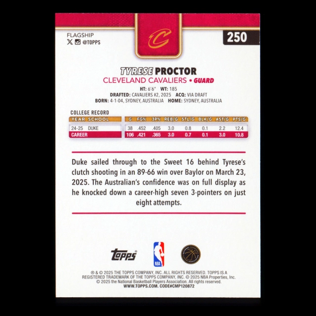 Tyrese Proctor RC 2025-26 Topps Rookie Cavaliers