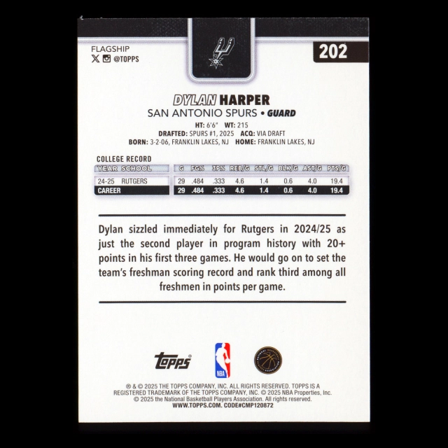 Dylan Harper RC 2025-26 Topps Rookie Spurs