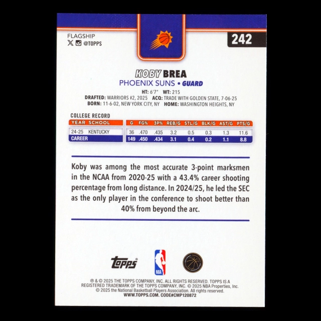 Koby Brea RC 2025-26 Topps Rookie Suns