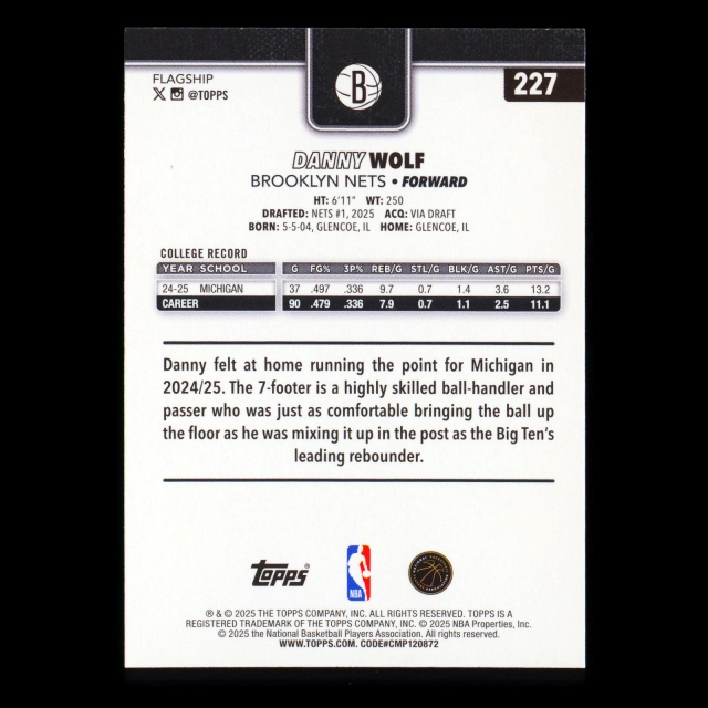Danny Wolf RC 2025-26 Topps Rookie Nets