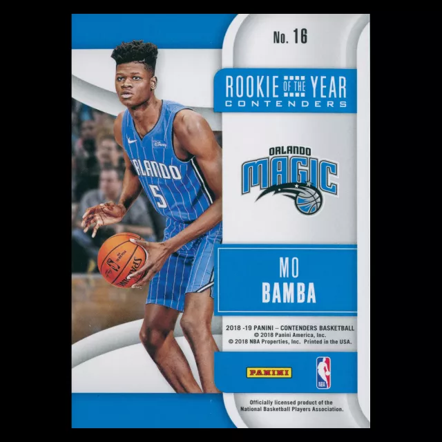 Mo Bamba RC 2018-19 Contenders Rookie of the Year Magic