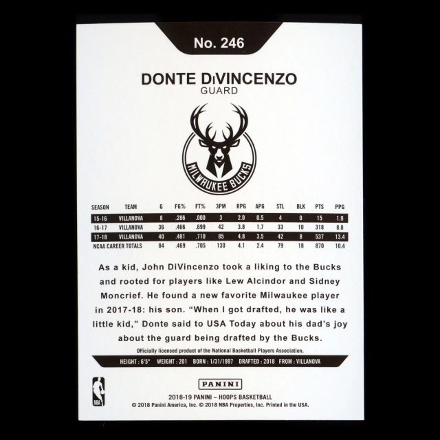 Donte DiVincenzo RC 2018-19 Panini NBA Hoops Rookie Bucks