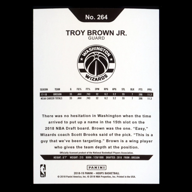 Troy Brown Jr. RC 2018-19 Panini NBA Hoops Rookie Wizards