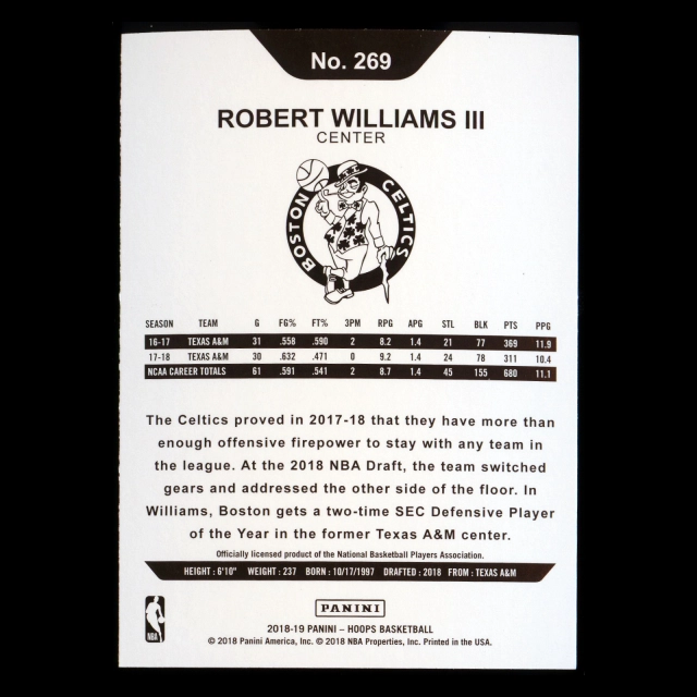 Robert Williams III RC 2018-19 Panini NBA Hoops Rookie Celtics