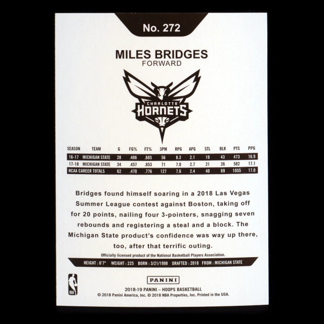 Miles Bridges RC 2018-19 Panini NBA Hoops Rookie Hornets