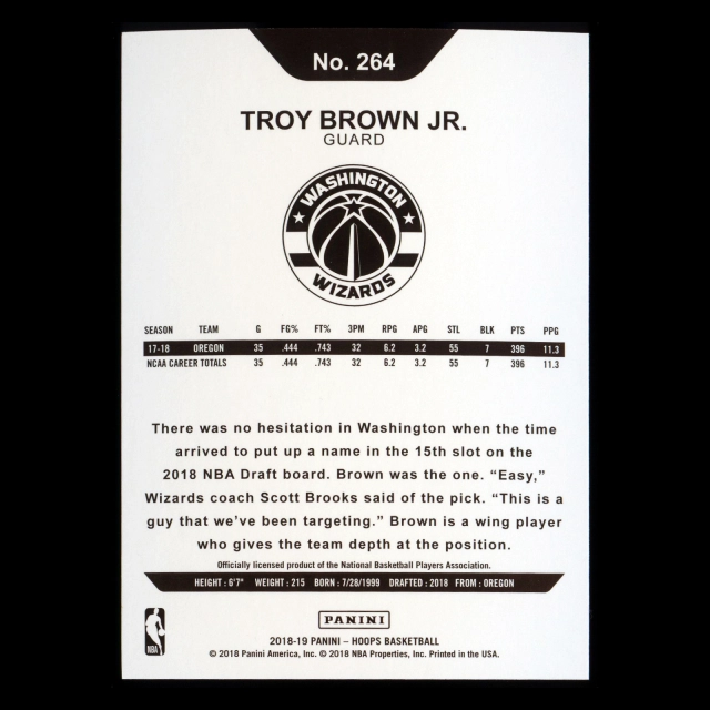 Troy Brown Jr. RC 2018-19 Panini NBA Hoops Rookie Wizards