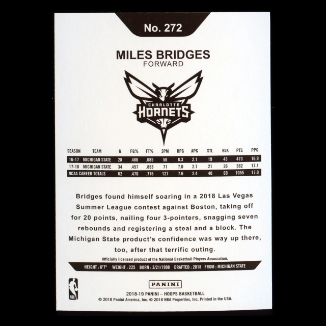 Miles Bridges RC 2018-19 Panini NBA Hoops Rookie Hornets