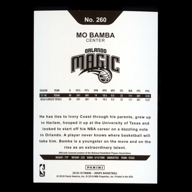Mo Bamba RC 2018-19 Panini NBA Hoops Rookie Magic