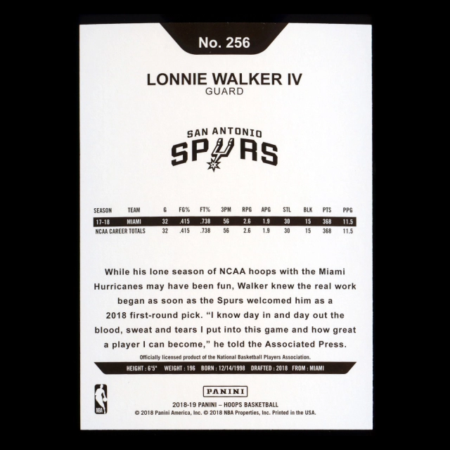 Lonnie Walker IV RC 2018-19 Panini NBA Hoops Rookie Spurs