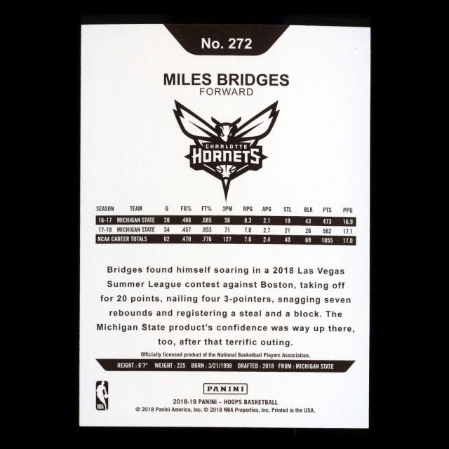Miles Bridges RC 2018-19 Panini NBA Hoops Rookie Hornets