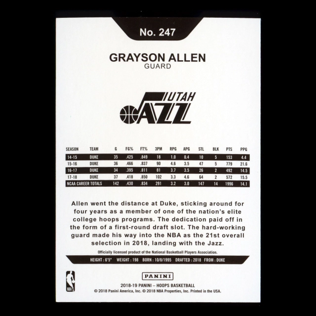 Grayson Allen RC 2018-19 Panini NBA Hoops Rookie Jazz