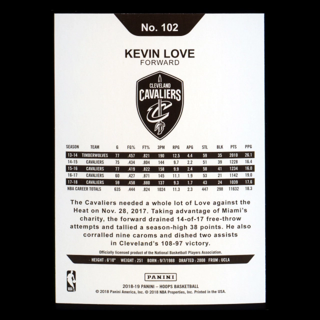 Kevin Love 2018-19 Panini NBA Hoops Purple Cavaliers