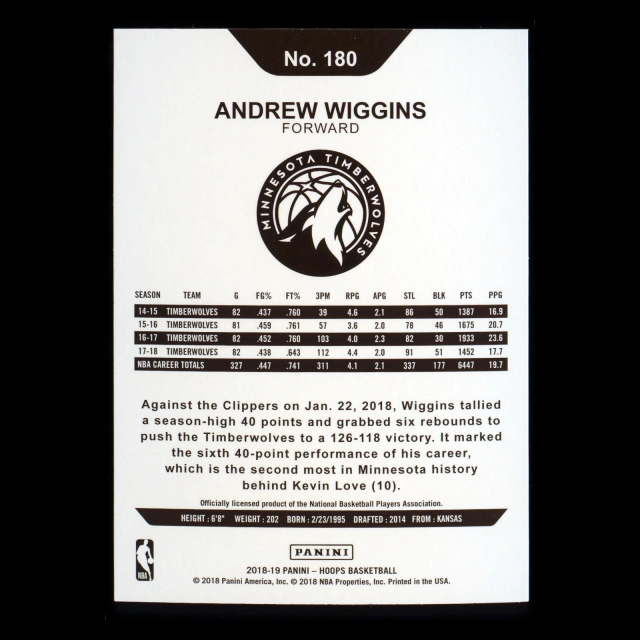 Andrew Wiggins 2018-19 Panini NBA Hoops Purple Timberwolves