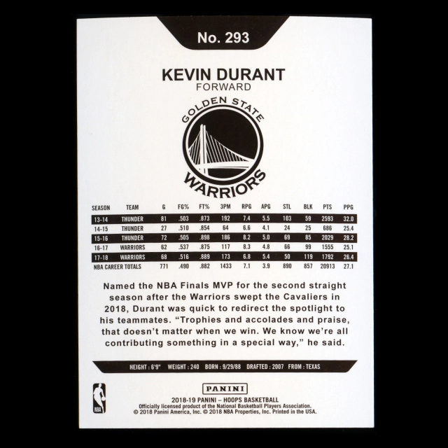Kevin Durant 2018-19 Panini NBA Hoops Tribute Warriors