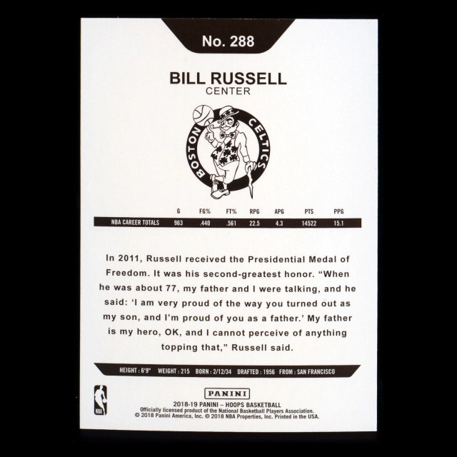 Bill Russell 2018-19 Panini NBA Hoops Tribute Celtics