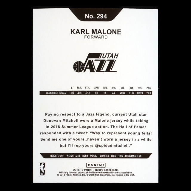 Karl Malone 2018-19 Panini NBA Hoops Tribute Jazz