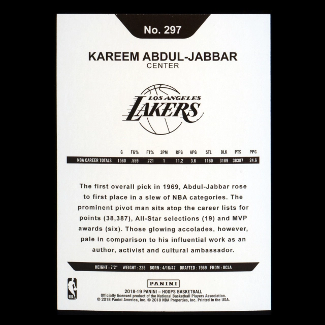 Kareem Abdul-Jabbar 2018-19 Panini NBA Hoops Tribute Lakers
