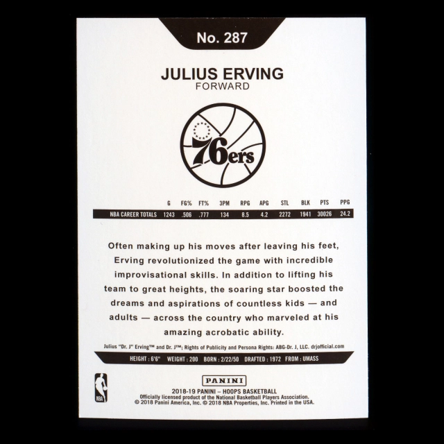 Julius Erving 2018-19 Panini NBA Hoops Tribute 76ers