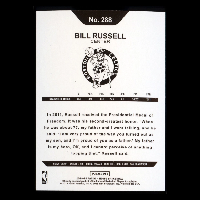 Bill Russell 2018-19 Panini NBA Hoops Tribute Celtics
