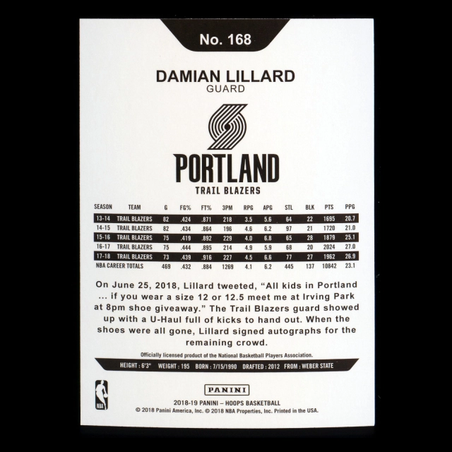 Damian Lillard 2018-19 Panini NBA Hoops Trail Blazers
