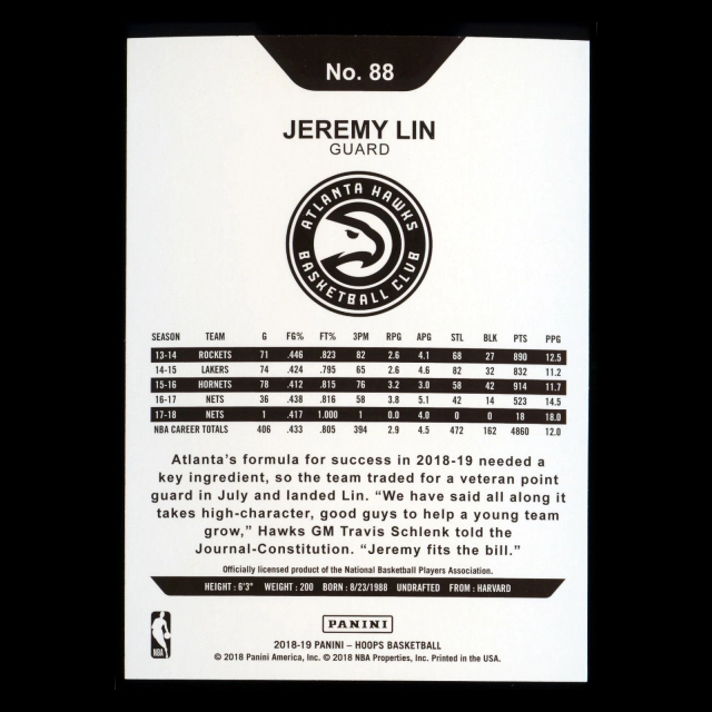 Jeremy Lin 2018-19 Panini NBA Hoops Hawks