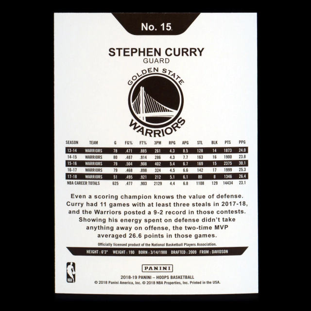 Stephen Curry 2018-19 Panini NBA Hoops Warriors