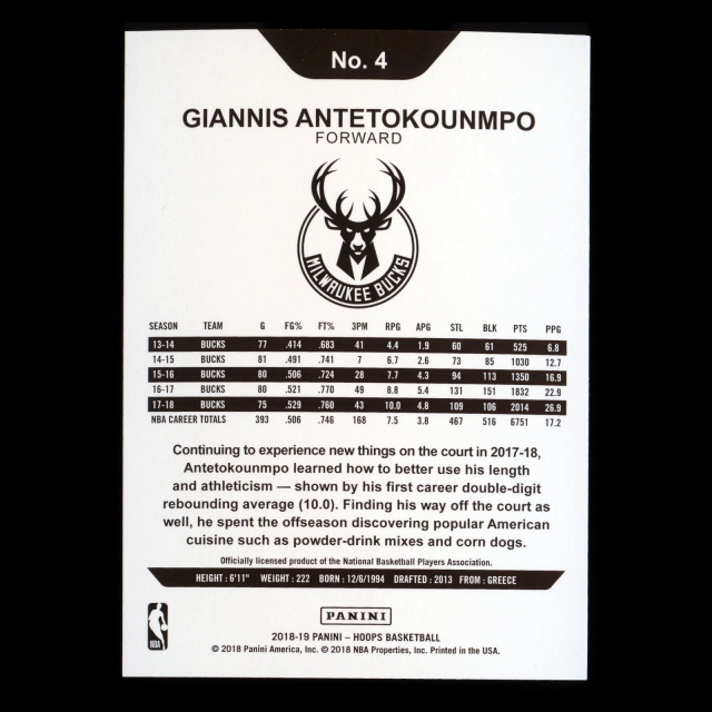 Giannis Antetokounmpo 2018-19 Panini NBA Hoops Bucks