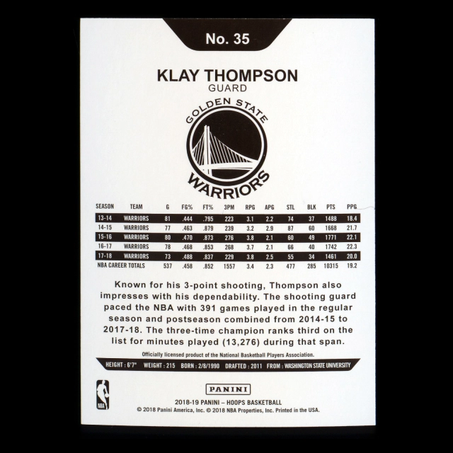 Klay Thompson 2018-19 Panini NBA Hoops Warriors