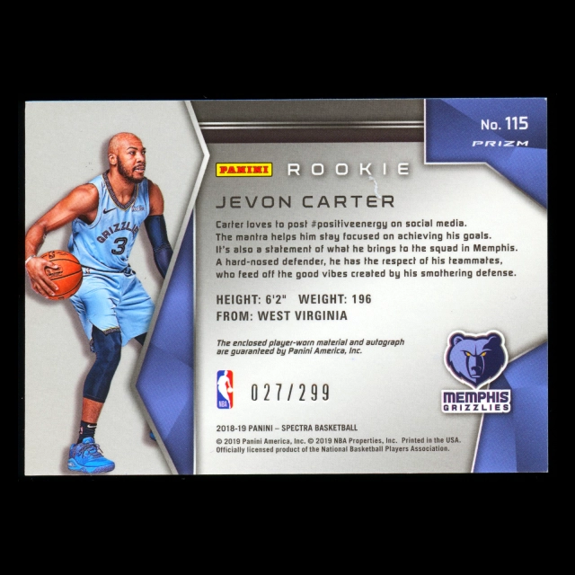 Jevon Carter RC 2018-19 Spectra JSY Auto Rookie Grizzlies 027/299