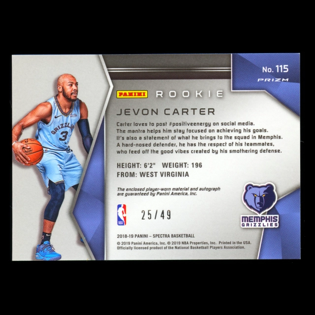 Jevon Carter 2018-19 Spectra Neon Green JSY Auto Grizzlies 25/49