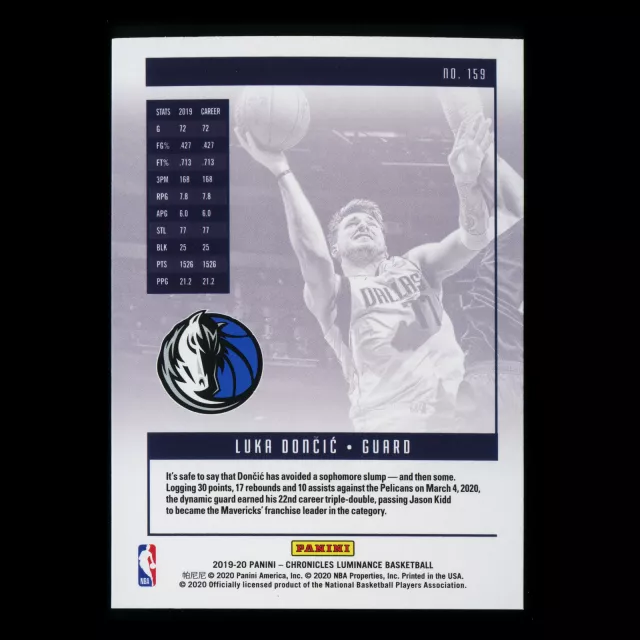 Luka Doncic 2019-20 Chronicles Luminance Mavericks
