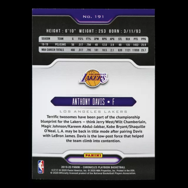 Anthony Davis 2019-20 Chronicles Playbook Lakers