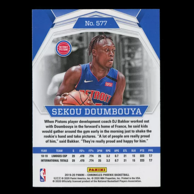 Sekou Doumbouya RC 2019-20 Chronicles Phoenix Rookie Pistons