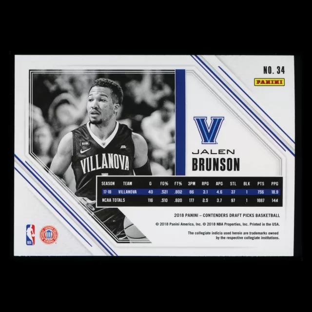 Jalen Brunson RC 2018 Contenders Draft Picks Rookie Game Day Ticket Mavericks