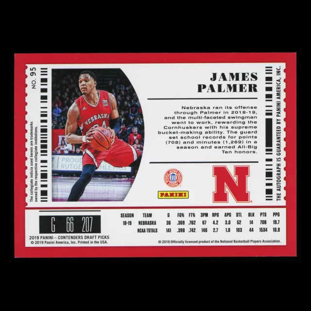 James Palmer 2019 Contenders Draft Picks College Ticket Auto Clippers