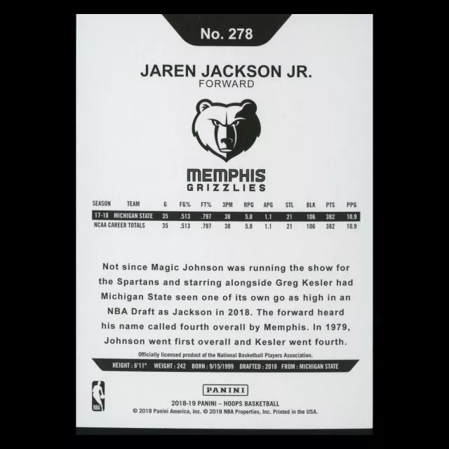 Jaren Jackson Jr. RC 2018-19 Hoops Rookie Grizzles