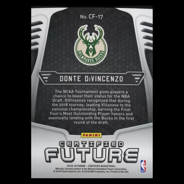 Donte DiVincenzo RC 2018-19 Certified Future Rookie Bucks