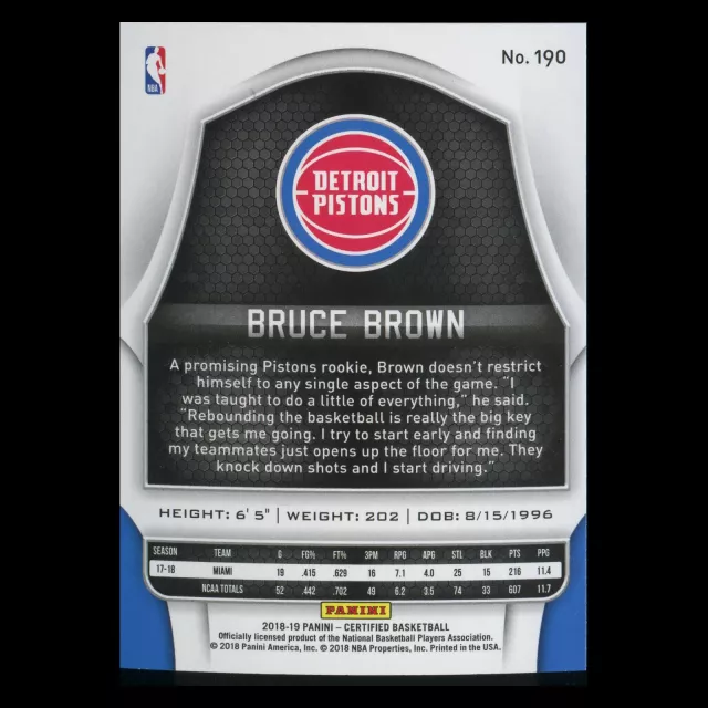 Bruce Brown RC 2018-19 Certified Rookie Pistons