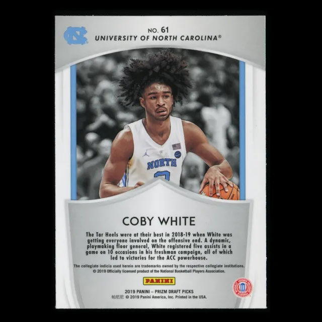 Coby White RC 2019-20 Prizm Draft Picks Rookie Crusade Tar Heels Bulls