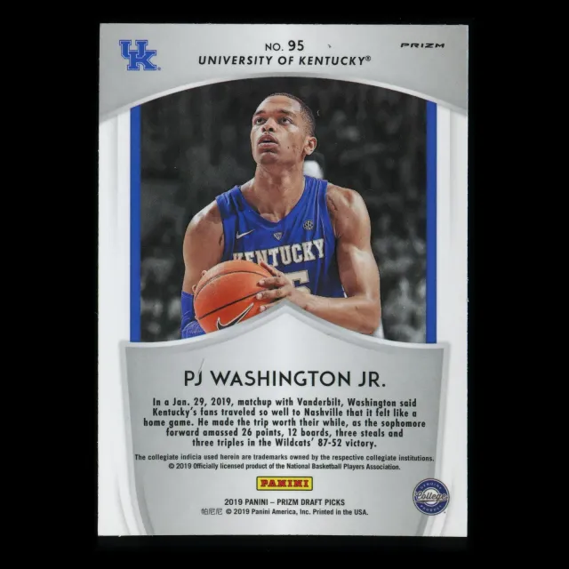PJ Washington RC 2019-20 Prizm Draft Picks Crusade Blue Rookie Wildcats | Hornets