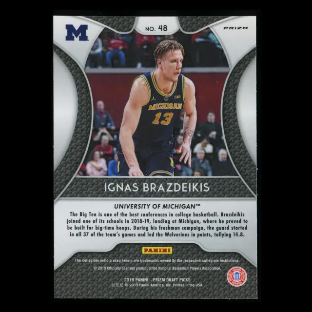Ignas Brazdeikis RC 2019-20 Prizm Draft Picks Silver Rookie Wolverines | Knicks