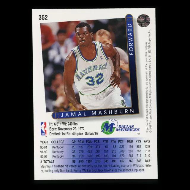 Jamal Mashburn RC 1993-94 Upper Deck Rookie Mavericks