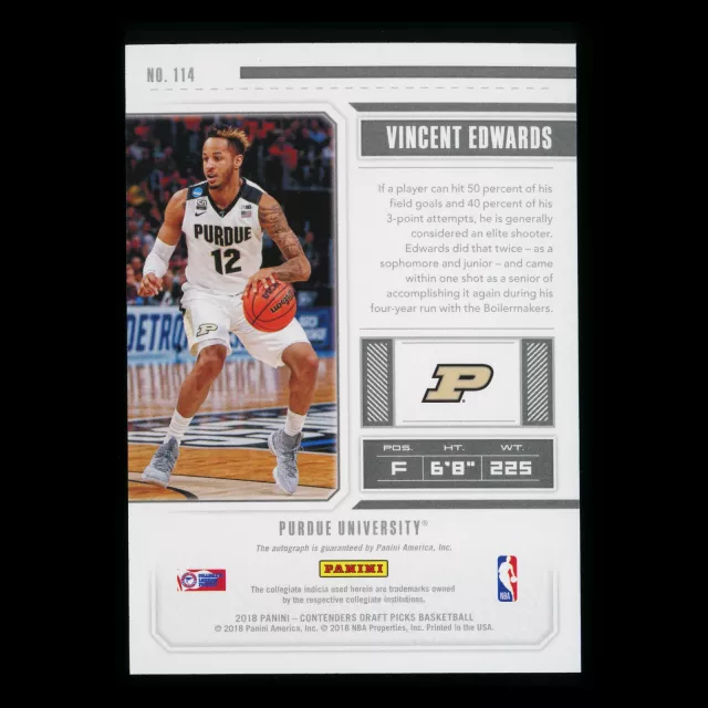 Vincent Edwards RC 2018 Contenders Draft Picks College Ticket Rookie Auto Canton Charge/Boilermakers