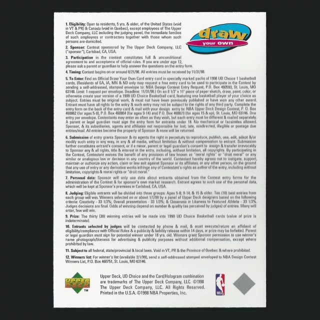Michael Jordan 1998-99 UD Choice Draw Your Own Card Bulls