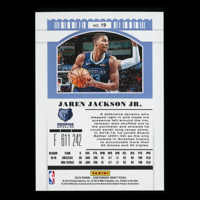 Jaren Jackson Jr. 2019 Contenders Draft Picks Season Ticket Grizzlies