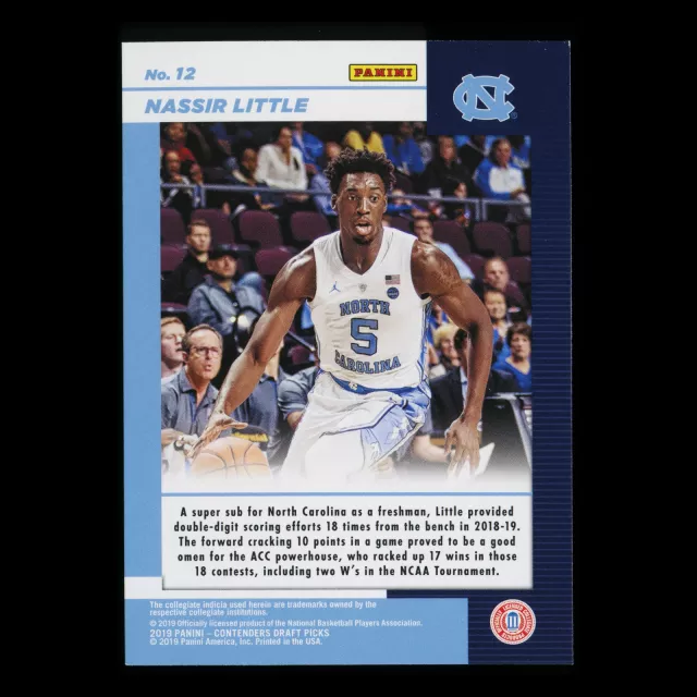 Nassir Little RC 2019 Contenders Draft Picks Rookie Game Day Ticket Tar Heels/Trail Blazers