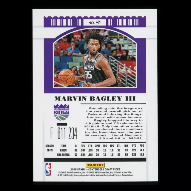 Marvin Bagley III 2019 Contenders Draft Picks Season Ticket Kings